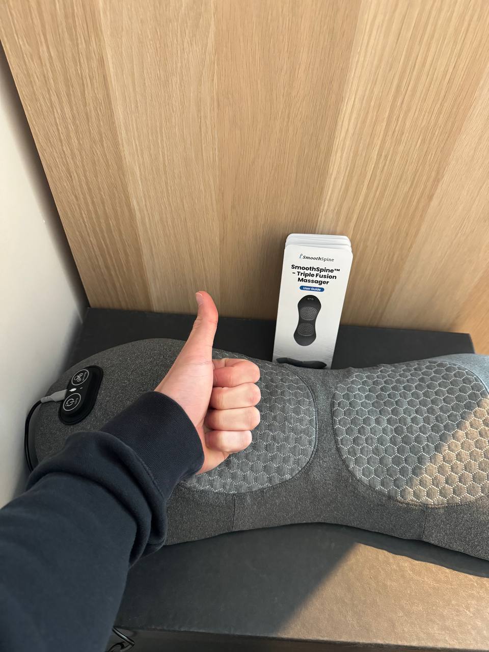 הנח את SpineCore על המיטה, הספה או הרצפה. שכב כך שאזור המותן שלך נח על המכשיר. השתמש בלחצנים לבחירת עוצמה מועדפת.