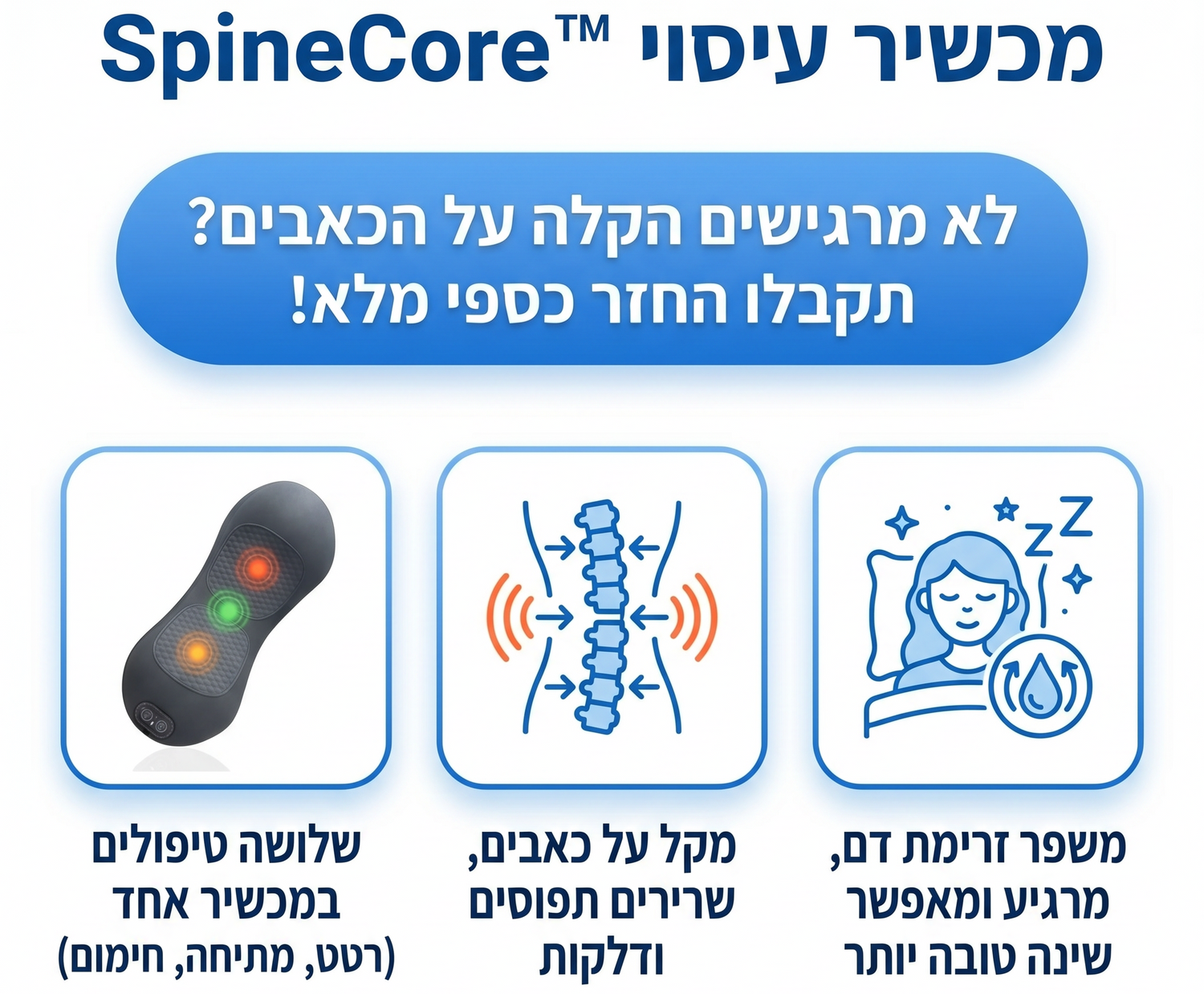 מכשיר אחד. שלושה טיפולים. הקלה מלאה בגב.